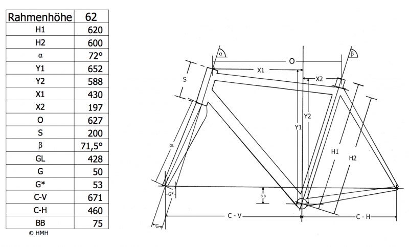 Rahmenhöhen 59 - 65 nicht integrierter 1-1/8" Steuersatz